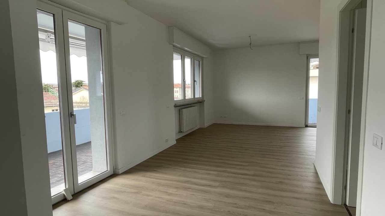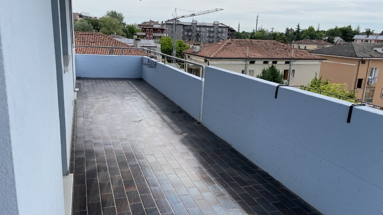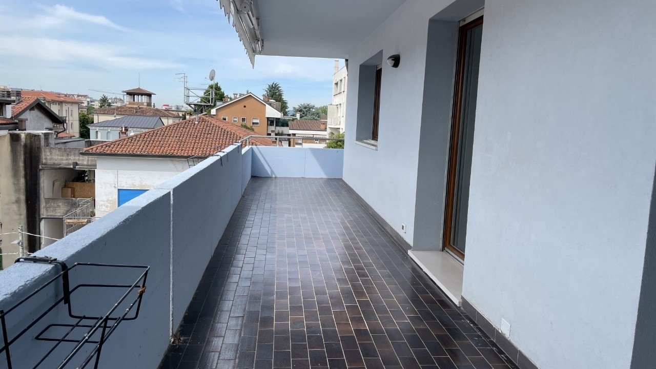 Vicenza ovest - in zona teatro, attico panoramico tutto su un piano con ingresso, soggiorno, cucina separata, tre camere matrimoniali, due bagni finestrati, ripostiglio/lavanderia, circondato da terrazzi su tutti i lati. Due garage singoli e posto auto. Termo autonomo.