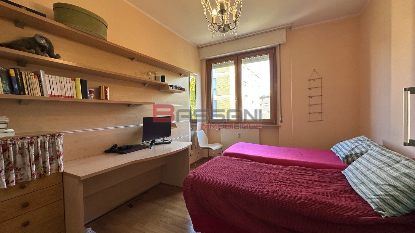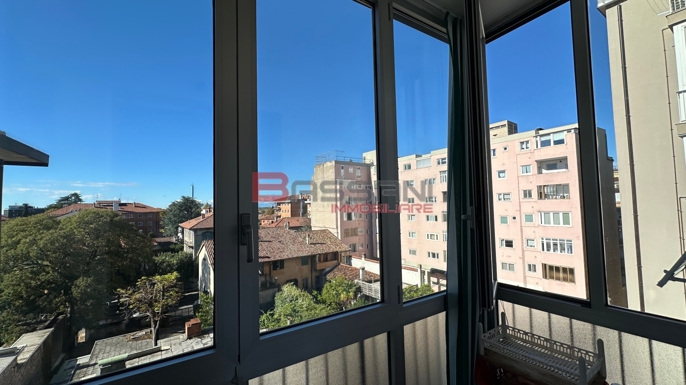 Appartamento tricamere di circa 150 mq al quinto piano di una palazzina curata e signorile nel cuore della citta'.l'ingresso, ampio e separato, conduce a un corridoio che si apre sul luminoso soggiorno con terrazzino affacciato sulla centralissima piazzetta di largo dei pecile.dal corridoio si accede inoltre al bagno di servizio con doccia e alla spaziosa cucina abitabile dotata di veranda ad uso lavanderia.la zona notte comprende un ampio bagno con doccia, due camere matrimoniali, una camera singola e un comodo ripostiglio.l'immobile ha beneficiato di importanti interventi di ammodernamento nel 2007, con il rifacimento degli impianti elettrico e idraulico, dei bagni e dei serramenti.completano la proprieta' una cantina e un raro garage, particolarmente prezioso per la zona.la palazzina ha visto negli ultimi anni diversi interventi di manutenzione straordinaria, tra cui la sostituzione della caldaia centralizzata, il rifacimento dell'ingresso condominiale e la sostituzione dell'ascensore.