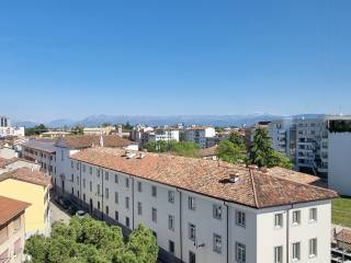Via Treppo/Via Petrarca … quadricamere biservizi Scopri l'eleganza e la comodità di questo magnifico appartamento situato in una posizione strategica a 5 minuti a piedi dal Cuore di Udine, a pochi passi dal Teatro, dall'Università, dalle scuole e dai giardini di Piazza Primo Maggio.. Questo immobile al sesto piano con ascensore di un condominio signorile offre una vista panoramica mozzafiato grazie alla sua tripla esposizione. Con una generosa metratura di 230 mq, l'appartamento è luminosissimo e ben distribuito, comprendendo un ampio salone con pavimento in seminato di Zavagno e Il terrazzino che regala una vista impareggiabile sulle montagne, tre spaziose camere da letto, uno studio arredato su misura che può essere utilizzato come camera per ospiti e una cucina abitabile arredata con terrazzo verandato che offre una vista incantevole sulla città , doppi servizi finestrati .. e la praticità di un ripostiglio, soffitta, cantina spaziosa e garage inclusi nel prezzo .. Classe E , € 360.000,00 !!!
