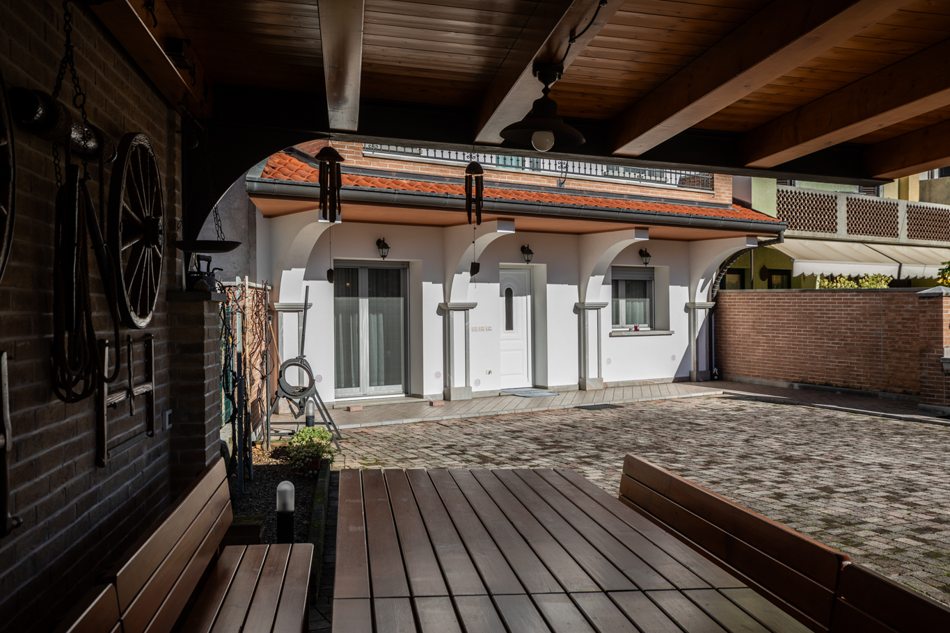 Splendida villetta a schiera, ricca di fascino e storia che unisce il calore degli ambienti tradizionali al comfort moderno. Disposta su tre livelli, offre ampi spazi abitativi: al piano terra salotto con muri in pietra e camino, cucina abitabile con spolert friulano, dispensa, bagno finestrato, lavanderia attrezzata e locale caldaia; al primo piano tre camere (una matrimoniale e due doppie), bagno con vasca idromassaggio e terrazzo di 8 mq; al piano superiore ampia soffitta open space. All’esterno, una corte in porfido con legnaia e lavanderia, un grande porticato ideale per cene e feste con impianto sonoro, e un giardino con possibilità di piscina interrata. Completano la proprietà due posti auto coperti. Rifiniture di pregio, serramenti in doppio vetro, cappotto e tetto isolato. Abitazione pronta da vivere, senza necessità di interventi.