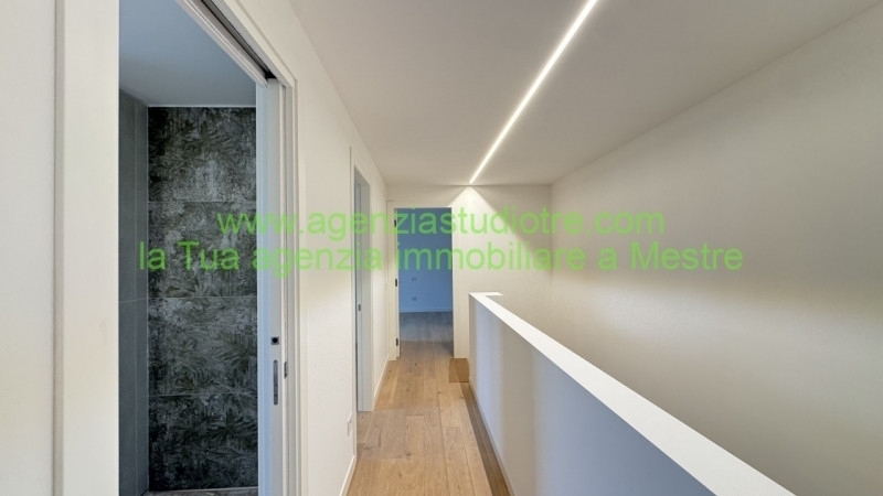 Proponiamo in vendita una splendida porzione di trifamiliare, situata nella centrale e vivace zona di mogliano veneto, a pochi minuti dal centro città, comodamente raggiungibile anche a piedi. Questa proprietà offre un ingresso indipendente e un giardino privato che la rendono ideale per chi cerca tranquillità senza rinunciare alla comodità dei servizi urbani.l'immobile si sviluppa su due livelli per un totale di 150 mq ed è privo di spese condominiali. Accedendo da un vialetto privato, vi troverete subito immersi in una luminosa zona giorno open space caratterizzata da ampie vetrate scorrevoli che offrono accesso diretto al giardino esclusivo. Questo spazio esterno è perfetto per pranzi all'aperto o momenti di relax durante le belle giornate.la cucina funzionale è discretamente posizionata ma ben illuminata grazie ad una finestra orizzontale. Al piano terra sono presenti anche un bagno moderno e una stanza lavanderia, oltre all'accesso comodo al garage collegato direttamente all'appartamento.salendo le eleganti scale, accediamo alla zona notte composta da una spaziosa camera matrimoniale con bagno en-suite, due camere singole ideali per ospiti o bambini e un ulteriore bagno completo.questa soluzione immobiliare si distingue non solo per gli spazi ben distribuiti ma anche per le finiture di alto livello: impianto fotovoltaico, riscaldamento a pavimento, ventilazione meccanica controllata (vmc) e tende oscuranti motorizzate garantiscono comfort ed efficienza energetica.mogliano veneto è nota per il suo ambiente tranquillo pur essendo vicina alle principali vie comunicative verso treviso e venezia; la posizione strategica permette l'accesso facile ai trasporti pubblici come treni e autobus. Inoltre, nelle immediate vicinanze troverete negozi, scuole e aree verdi dove trascorrere piacevoli momenti all'aria aperta.non perdere questa opportunità unica! contattaci subito per maggiori dettagli o per prenotare una visita.