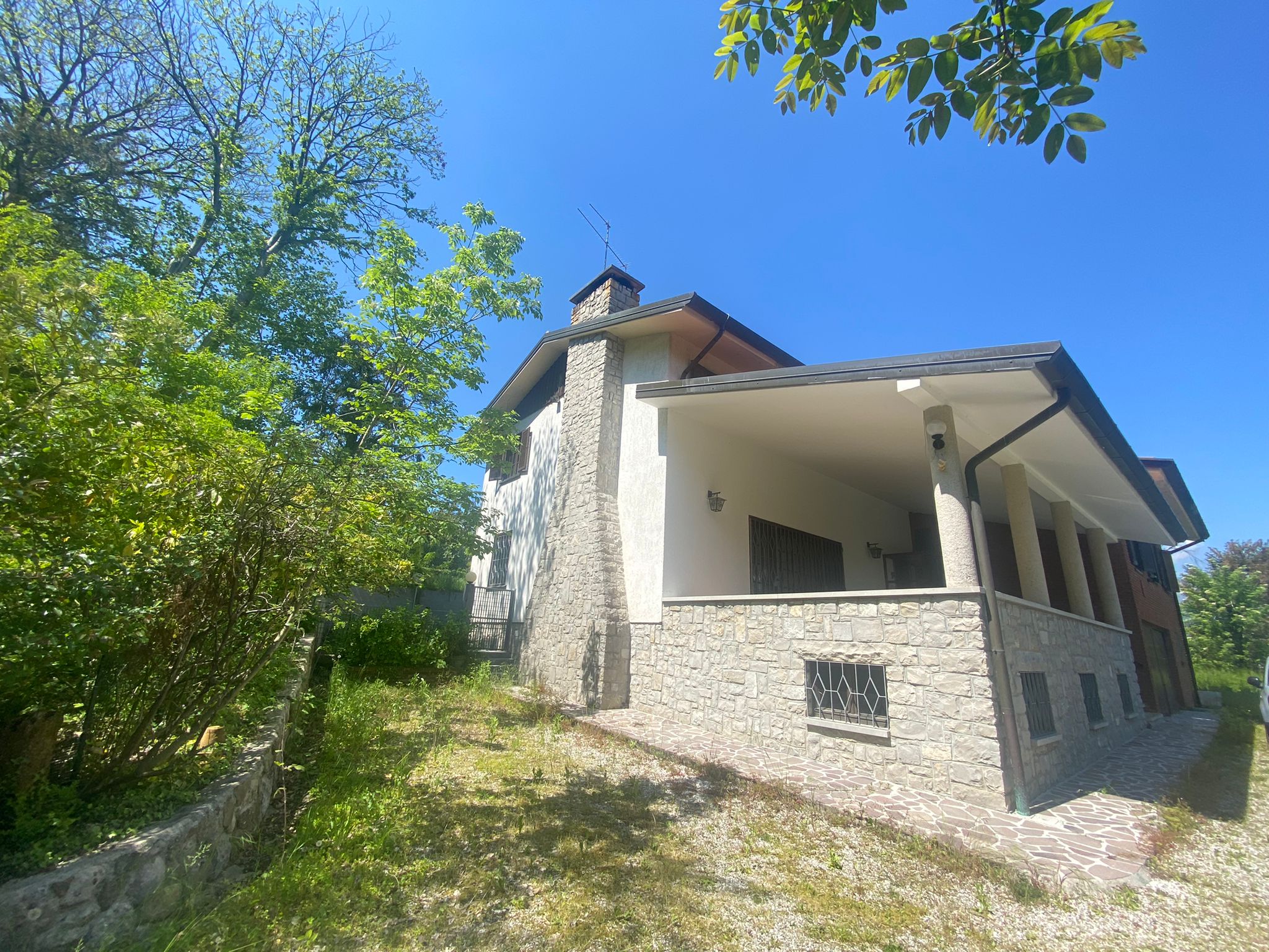 In tranquilla zona residenziale, casa singola così disposta: Piano rialzato di mq. 174: atrio d'ingresso, soggiorno-pranzo con affaccio all'ampia terrazza di mq. 48, cucina separata ed abitabile, dispensa, bagno di servizio, disimpegno notte, camera doppia, camera singola, bagno, ripostiglio e camera matrimoniale con bagno privato. Piano sottotetto di mq. 103: disimpegno, due camere da letto, studio, bagno e ripostiglio. Piano seminterrato di mq. 179: ampia taverna, lavanderia, cantina, centrale termica e autorimessa doppia di mq. 27 Adiacente la casa piccolo fabbricato adibito a deposito attrezzi di mq. 27 L'abitazione ha l'impianto di riscaldamento non funzionante.