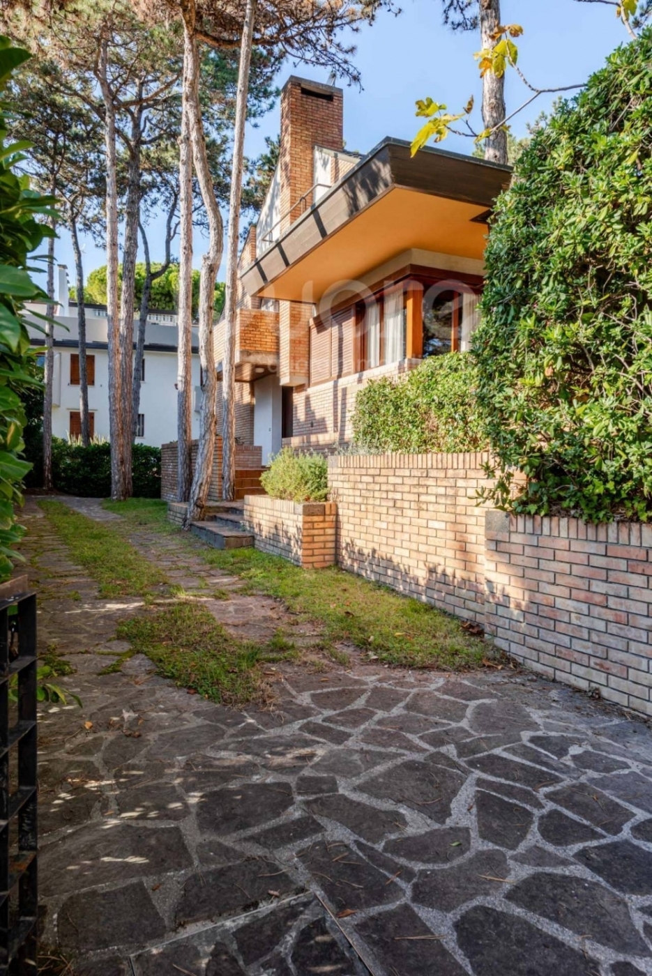Lignano pineta a soli 100 metri dal mare, in una delle zone più esclusive di lignano pineta, circondata dalle prestigiose architetture di d'olivo, avon e bernardis, questa splendida villa singola di 300 mq con giardino rappresenta la sintesi perfetta tra eleganza, stile e comfort abitativo. La villa si sviluppa su tre livelli. Al piano terra troviamo una splendida zona living di generose dimensioni, composta da cucina separata, salotto e zona pranzo, con accesso al patio esterno. Completano il piano una camera da letto, uno studio e un bagno finestrato. Il piano superiore ospita quattro ampie camere da letto e doppi servizi. Al piano seminterrato trovano spazio un box auto doppio, un ulteriore bagno di servizio e diversi vani accessori. L'immobile è impreziosito da ampie vetrate con affaccio sul giardino, creando una perfetta continuità tra gli spazi interni ed esterni. I raffinati rivestimenti in legno, l'arredo su misura e il calore del caminetto a legna creano un'atmosfera accogliente e senza tempo. Il rivestimento esterno in mattoni faccia a vista e i dettagli architettonici originali richiamano il fascino autentico dell'epoca in cui lignano pineta si è arricchita di eleganti ville singole di pregio, testimoni di uno stile esclusivo e ricercato.