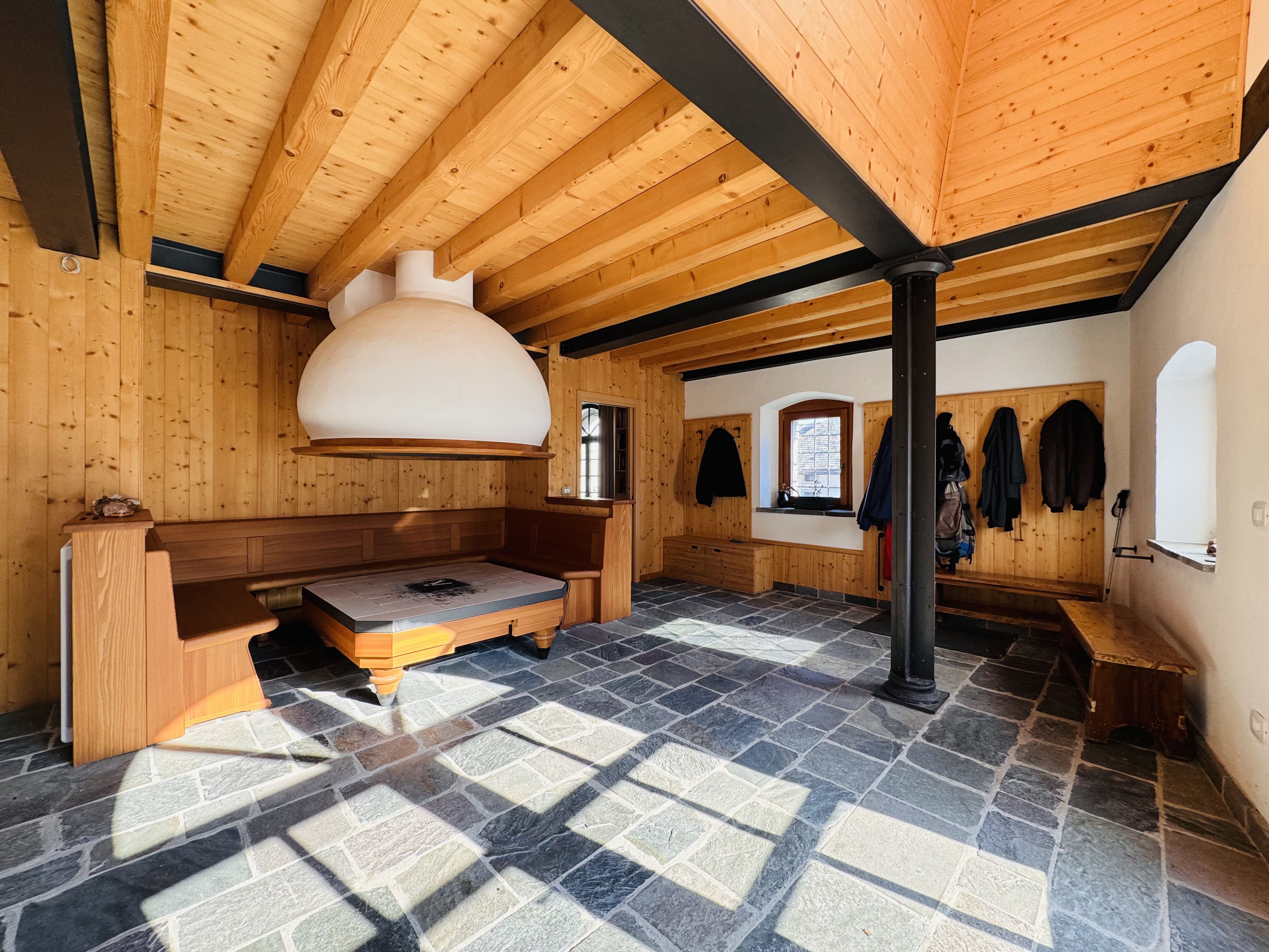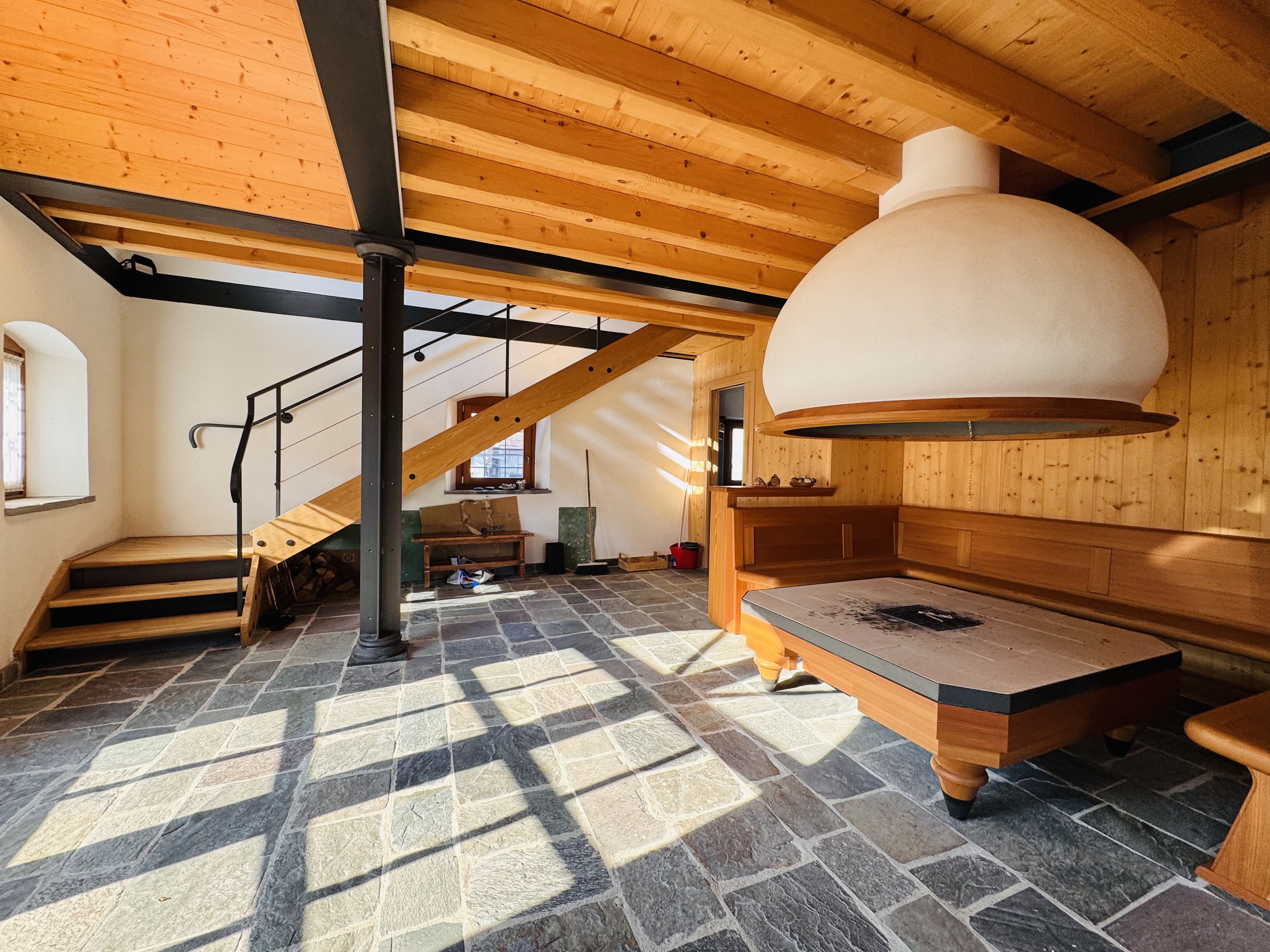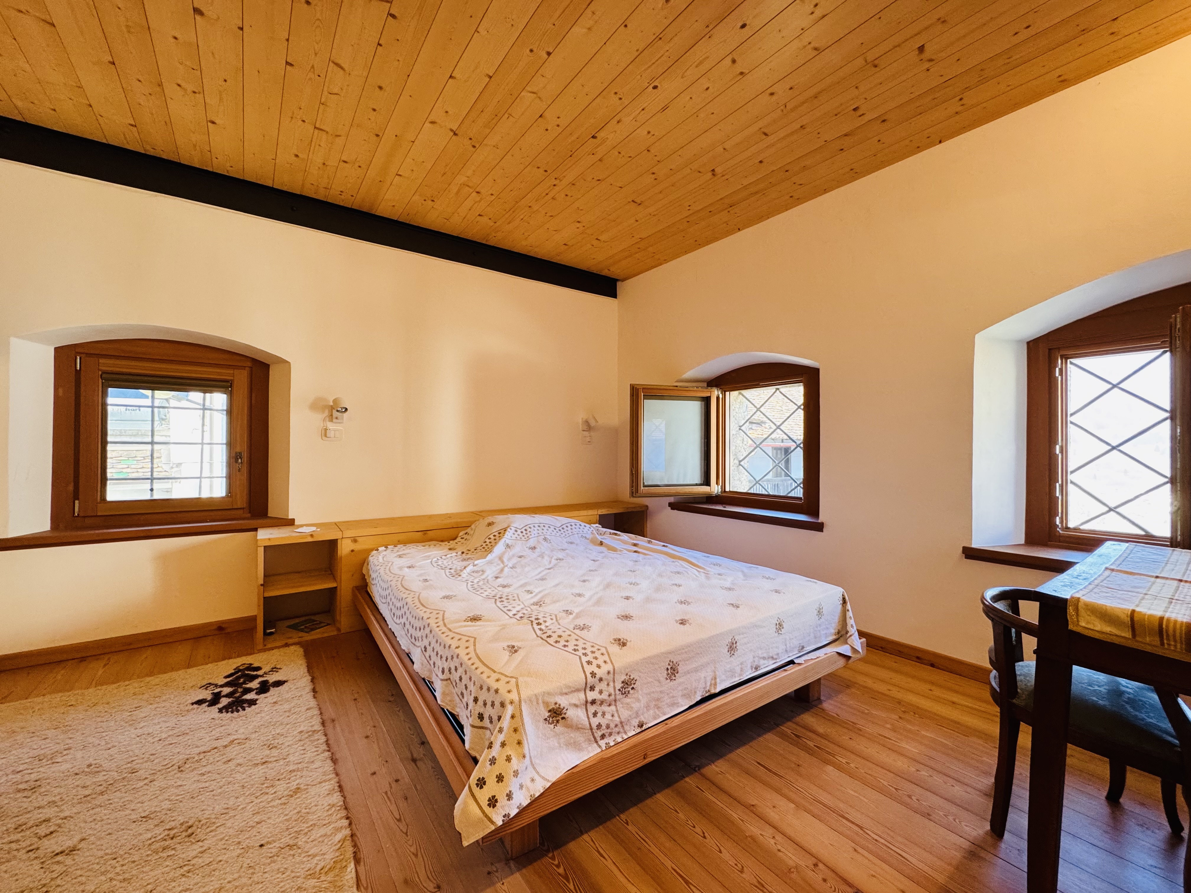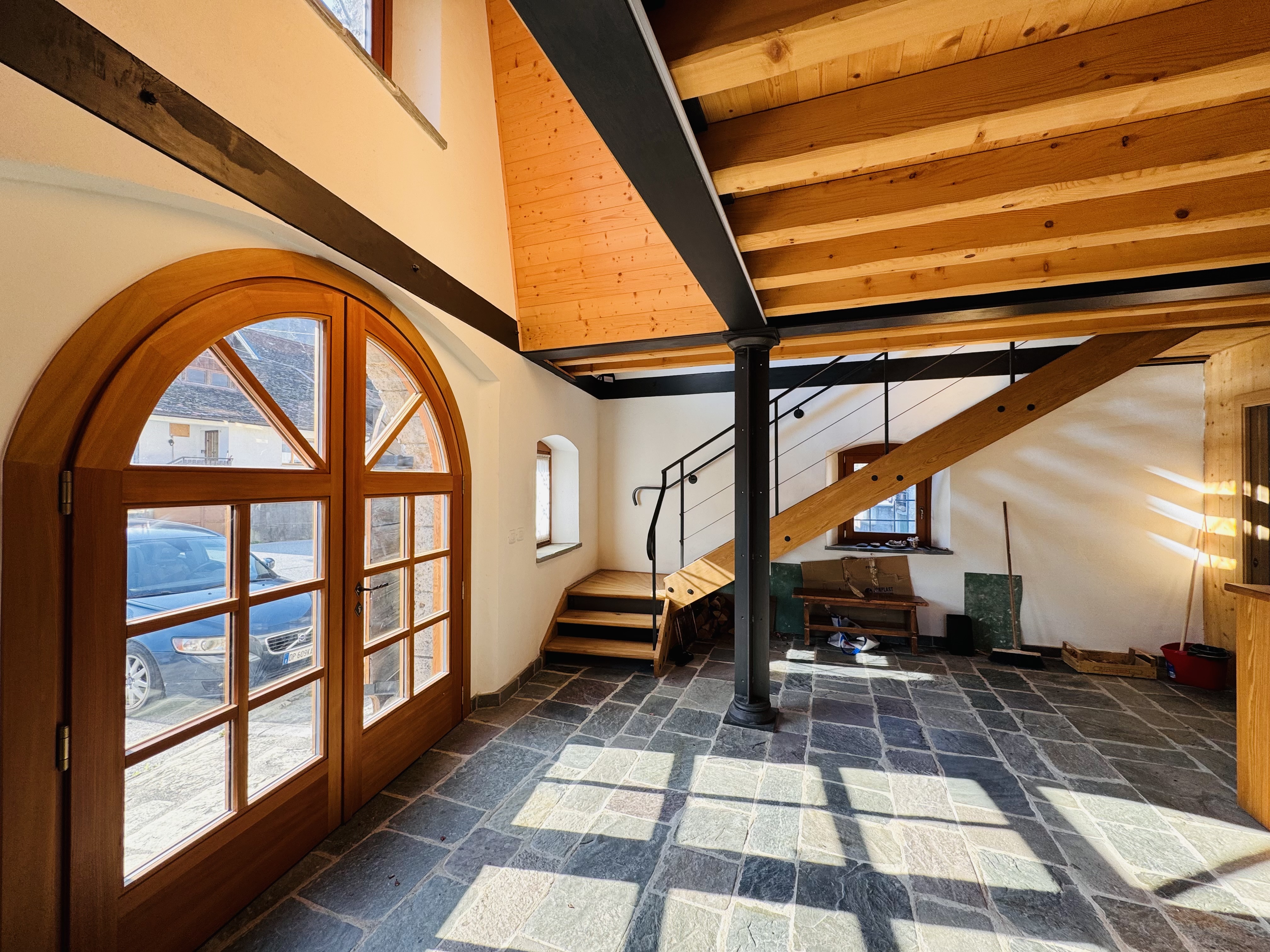 Ovaro Fraz. Mione, attaccata alla nota "casa dalle 100 finestre" (Palazzo Micoli Toscano), splendida soluzione indipendente pari al nuovo completamente ristrutturata con finiture ricercate. L'immobile si sviluppa su 3 piani fuori terra con una metratura complessiva di 300mq. Piano terra: ampio salone di ingresso con fogolar, bagno di servizio con vano caldaia, cucina separata ed abitabile, sala da pranzo, balcone, ripostiglio/lavanderia e camera matrimoniale con bagno privato. Primo piano: ampio disimpegno adibito a studio/zona lettura e due ampie camere matrimoniali anche queste con bagno en suite. Piano secondo: ampia soffitta con altezze abitabili. Esternamente completa la proprietà lo scoperto di 400mq da poter utilizzare come giardino e area di parcheggio. La casa è stata oggetto di un'importantissima ristrutturazione, un restauro curato nei minimi dettagli. Classe E Euro 440.000.