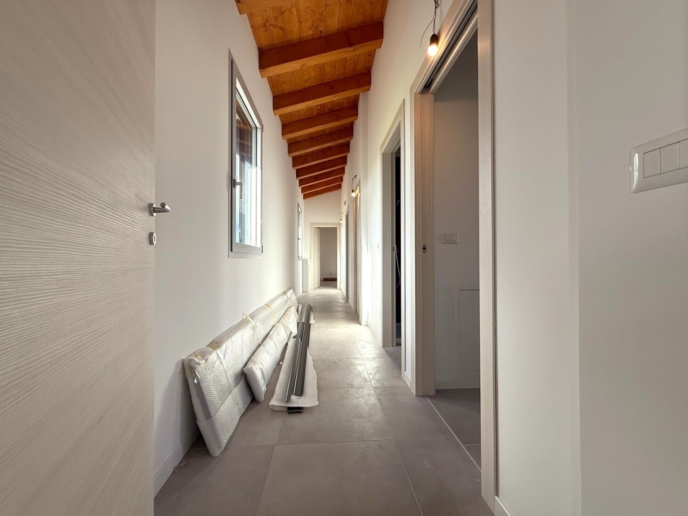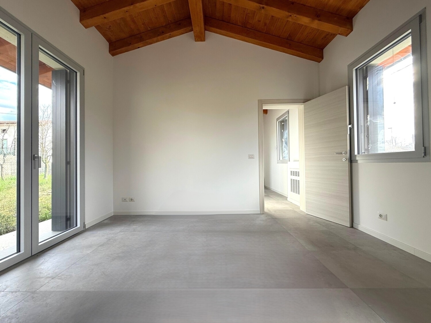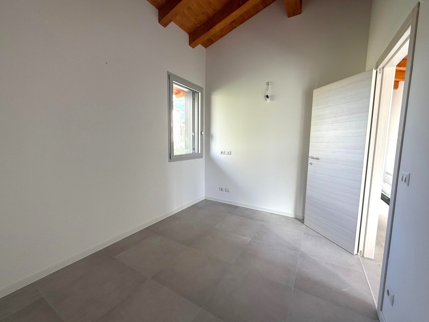Proponiamo in vendita unâ?esclusiva villetta singola di nuova costruzione, caratterizzata da un elevato standard costruttivo e certificata in Classe Energetica A4.La proprietà si sviluppa interamente al piano terra, abbattendo ogni barriera architettonica.Le caratteristiche principali sono:- layout = ingresso su zona living, due camere da letto e due bagni finestrati- tecnologia = impianto di riscaldamento a pavimento di ultima generazione, impianto fotovoltaico- estetica = soffitti con travi in legno a vista che conferiscono carattere e calore agli interni- esterno = giardino privato recintato, ideale per famiglie o amanti degli animali, e posto auto scopertoImmobile in pronta consegna, rifinito con materiali di alta qualità.