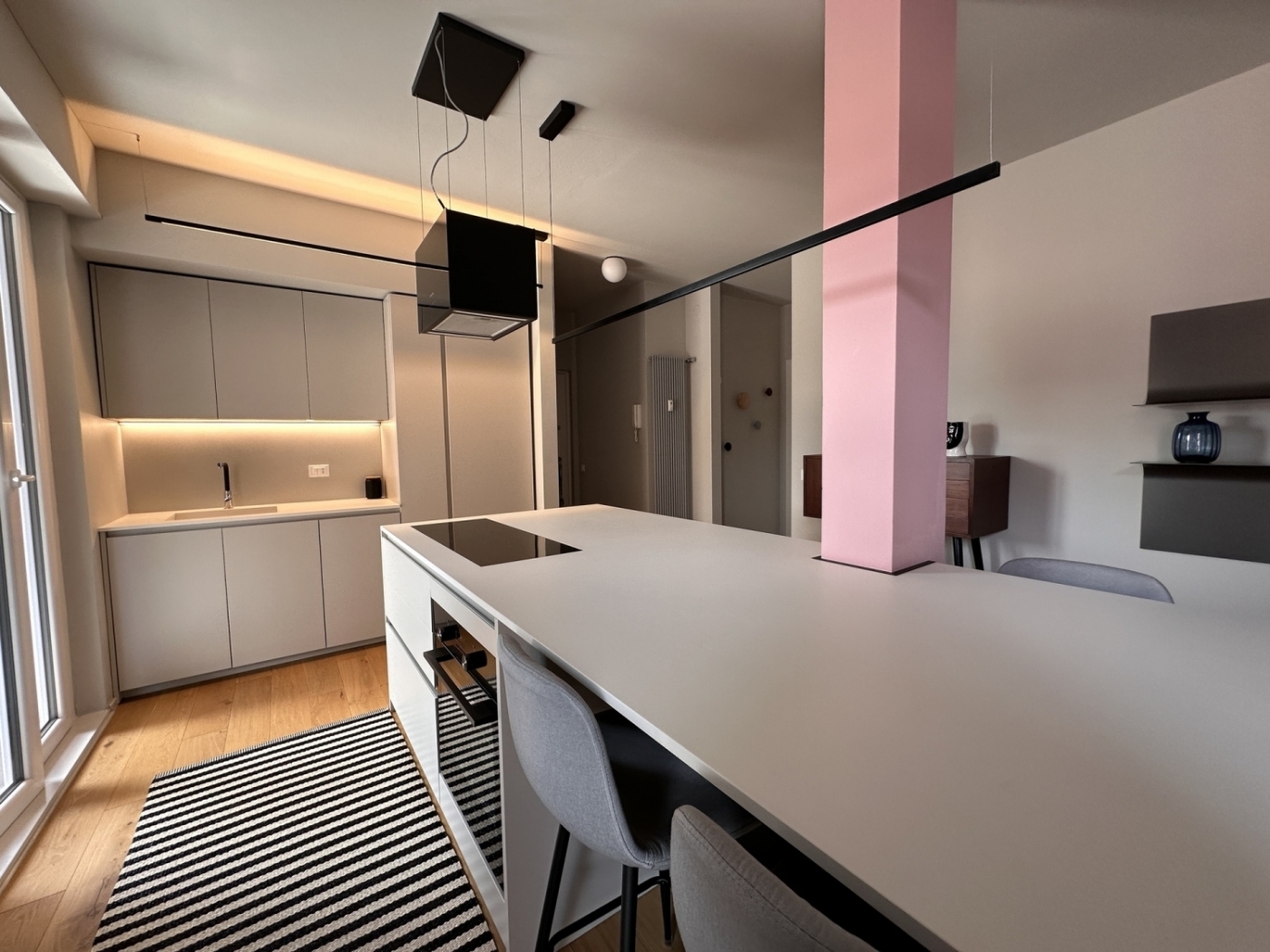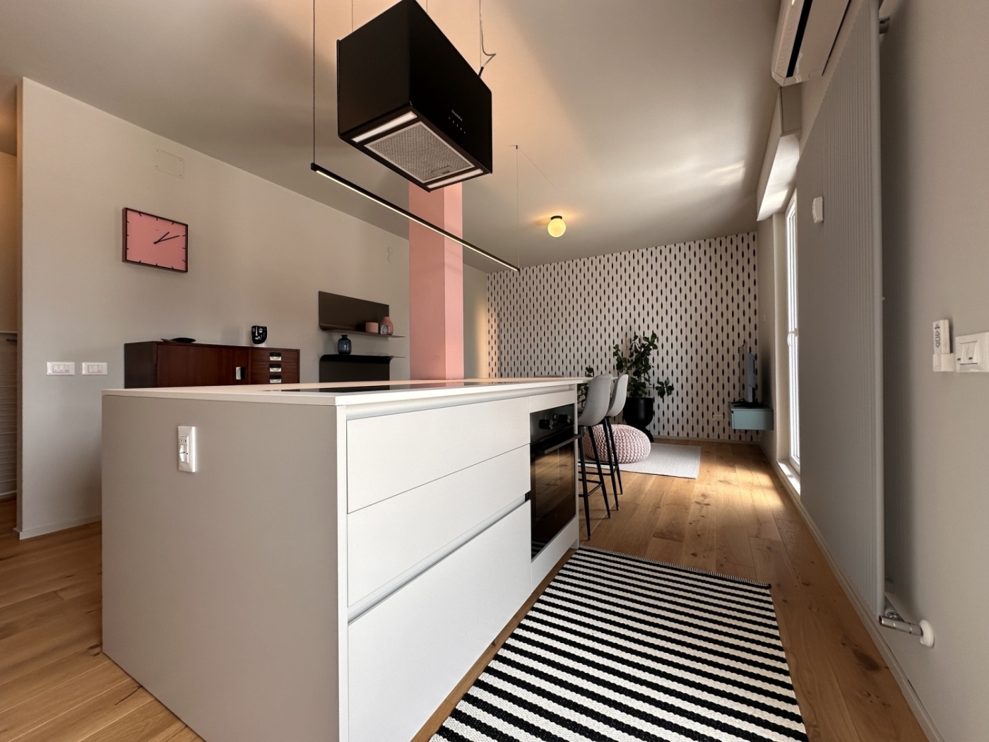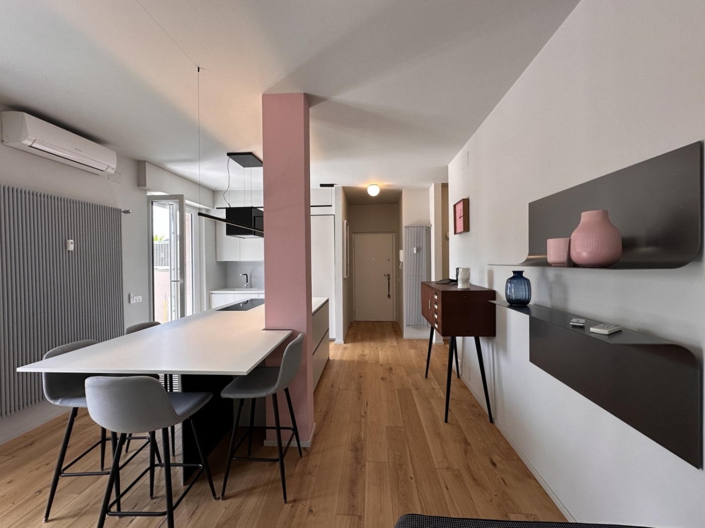 Via Ippolito Nievo - Meraviglioso attichetto che trasmette, oltre al benessere, anche il piacere di casa. Sì, questa realtà abitativa raccolta ma splendida offre tutti i comfort che un ultimo piano può regalare: luce, sapore, qualità, vista, terrazza, spazi comodi e lavanderia separata ... un piccolo mondo davvero esclusivo!Ristrutturato totalmente nel 2023 con qualità, amore e razionalità distributiva, dai colori e dalle atmosfere davvero accoglienti.Posizionato al quinto ed ultimo piano di un palazzo di fine anni '50 dotato di ascensore, l'appartamento di mq. 65 si sviluppa con una zona living open space, una camera matrimoniale molto grande, bagno e lavanderia, ed una meravigliosa ed ampia terrazza panoramica di mq. 18. Completo di una comoda cantina.Completamente arredato ed accessoriato (come da fotografie), con climatizzatore e pompa di calore, tenda esterna elettrificata, oscuranti motorizzati, lavatrice ed asciugatrice.Disponibilità immediata.